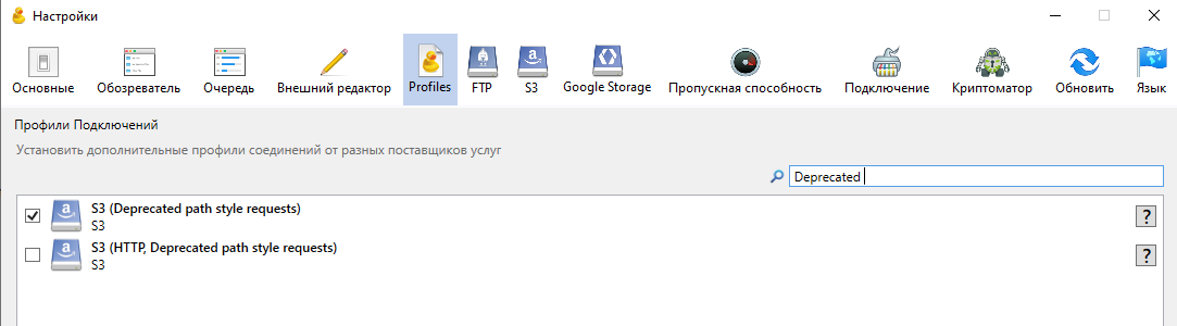 2. В открывшемся разделе найдите и отметьте "S3 (Deprecated path style requests)", как показано на скриншоте.